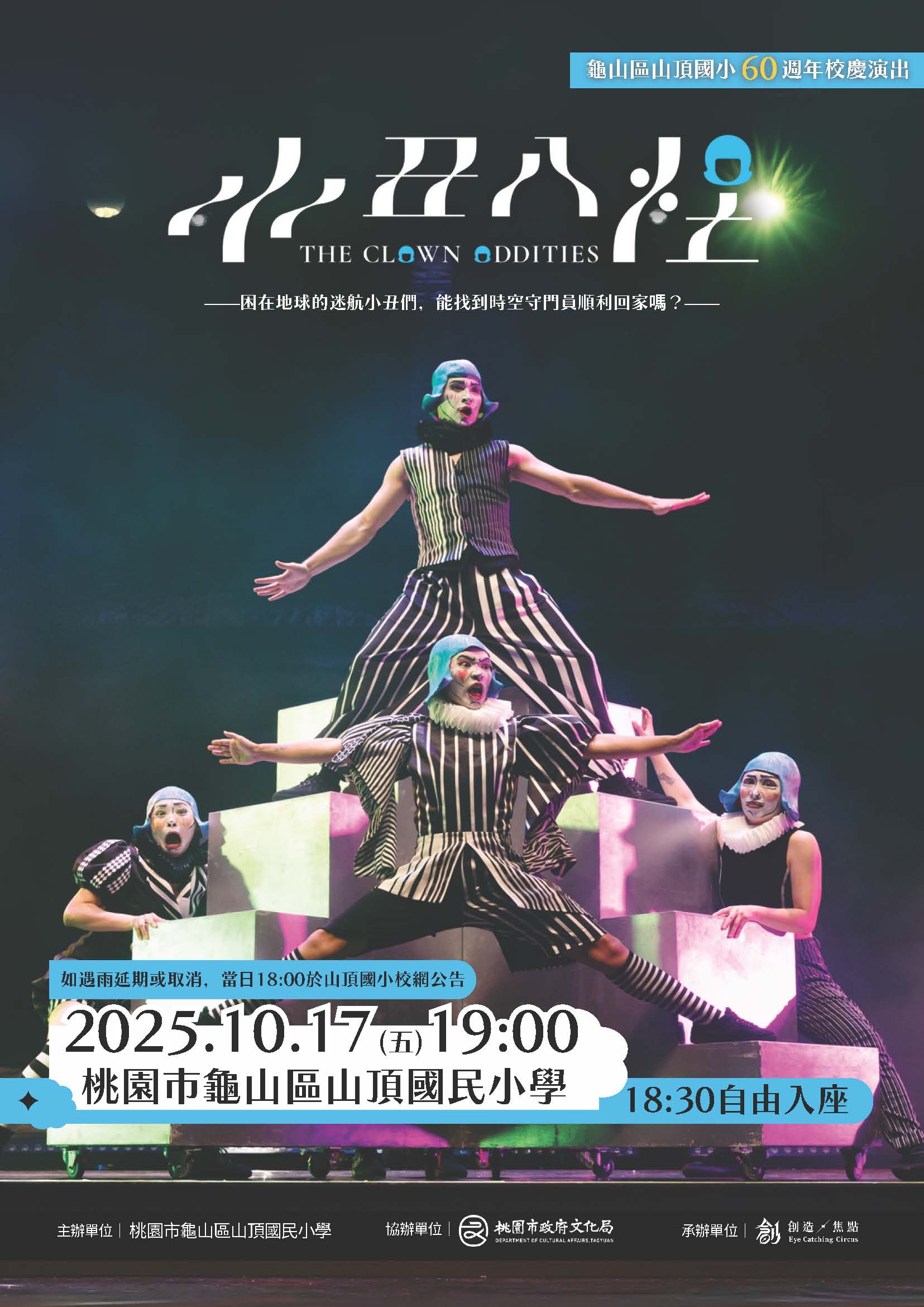 | 主旨: | 有關山頂國小辦理60週年校慶系列活動之一:創造焦點《小丑 八怪》馬戲劇團表演延期表演,邀請貴單位協助公告宣傳,並鼓勵貴單位人員參加,請查照。 |