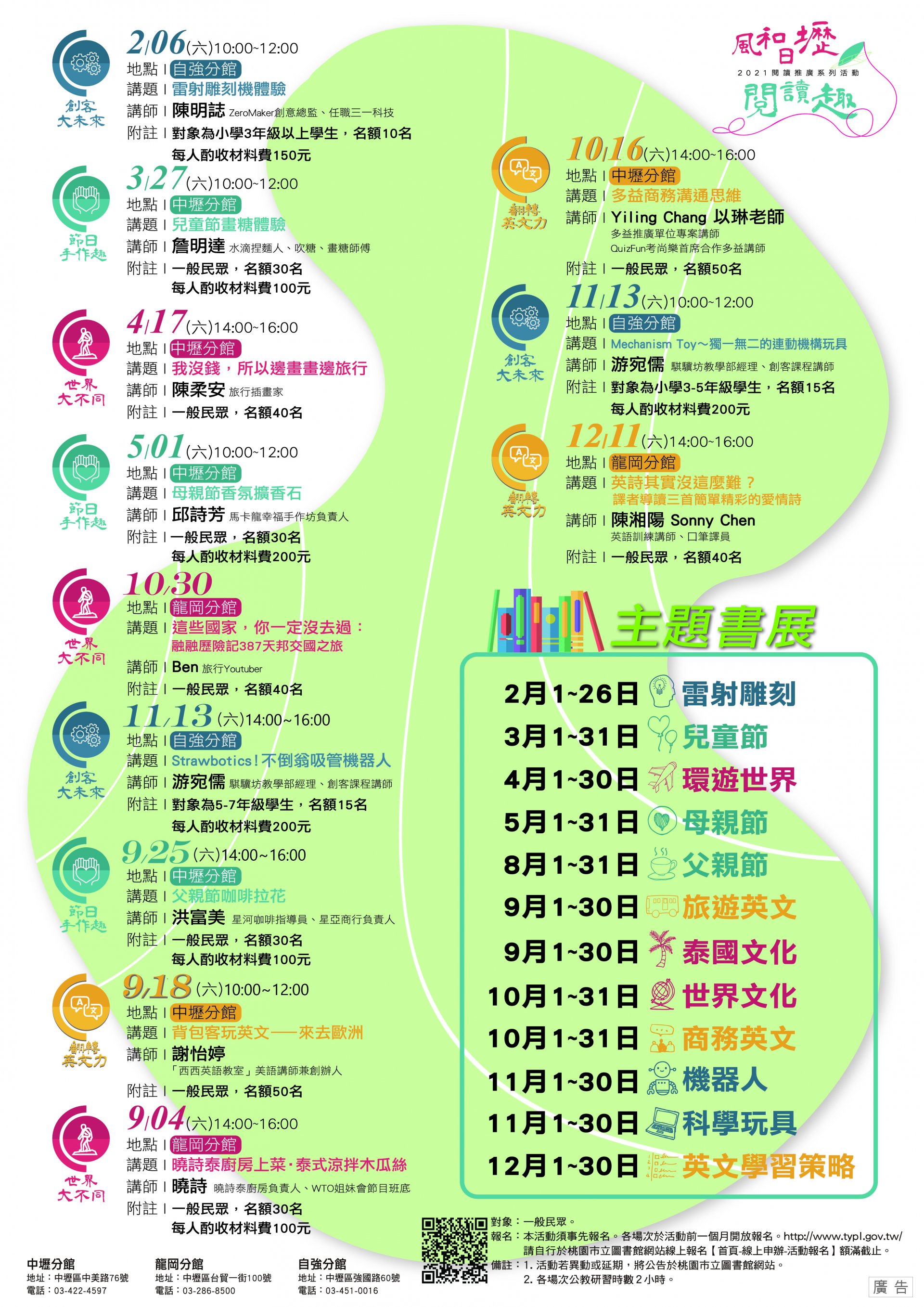 桃園市立圖書館辦理「2021風和日壢閱讀趣」系列講座修正時間
