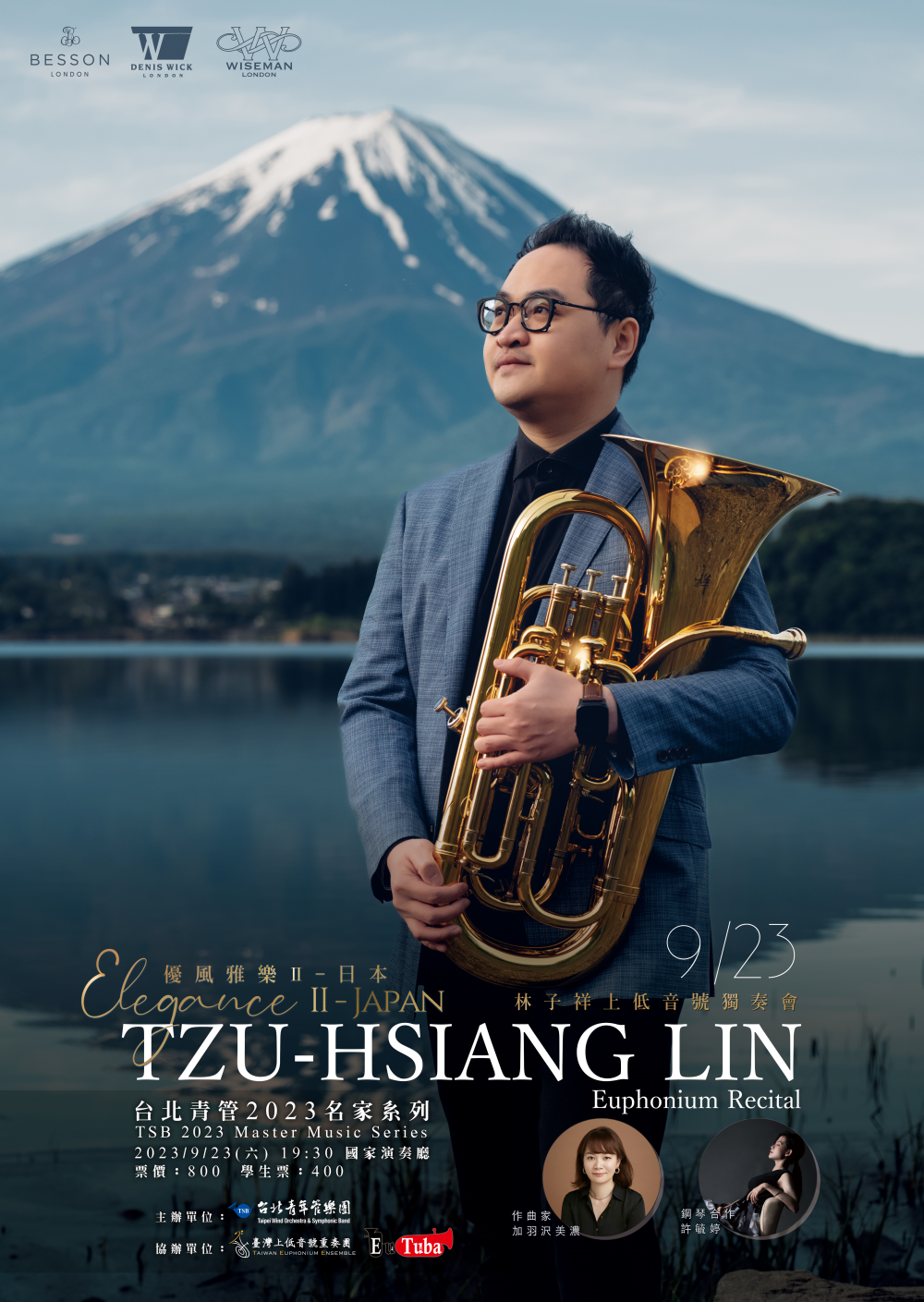| 一、 | 2023台北青管名家系列,本次規畫邀請台北青管上低音號首席林子祥老師,攜手鋼琴合作名家許毓婷老師,精選多首日本樂曲與委託創作,呈現日式風格華麗炫技與銅管美聲。 |