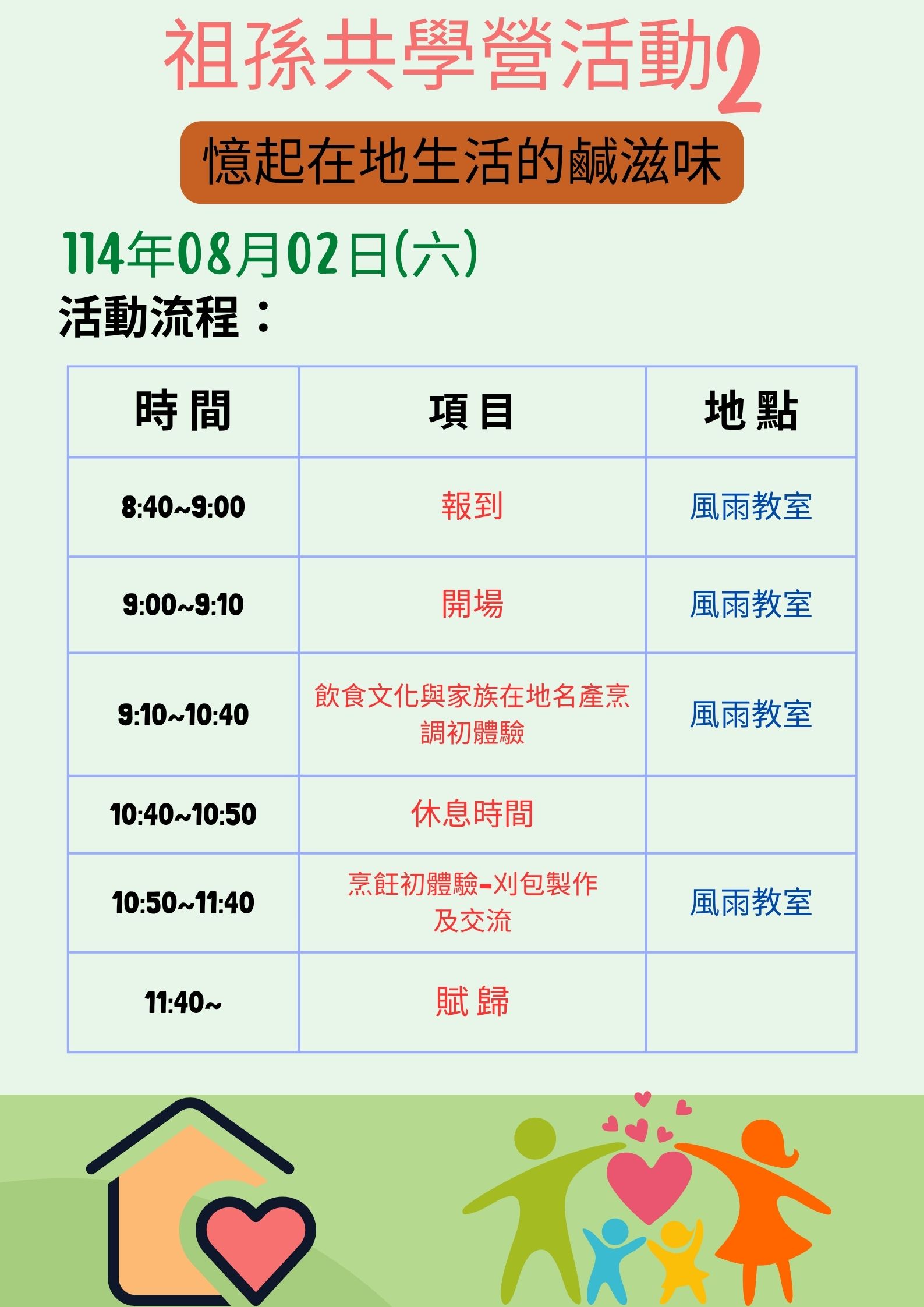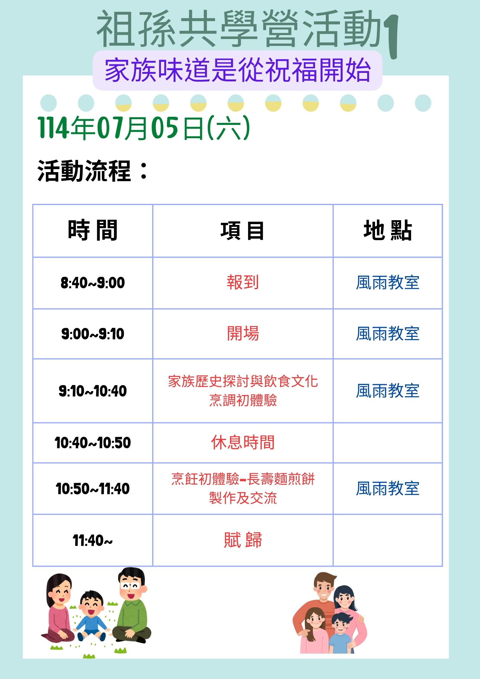 主旨: 內柵國民小學於114年7月5日(六)及8月2日(六)舉辦「暑期祖孫共學營活動」。