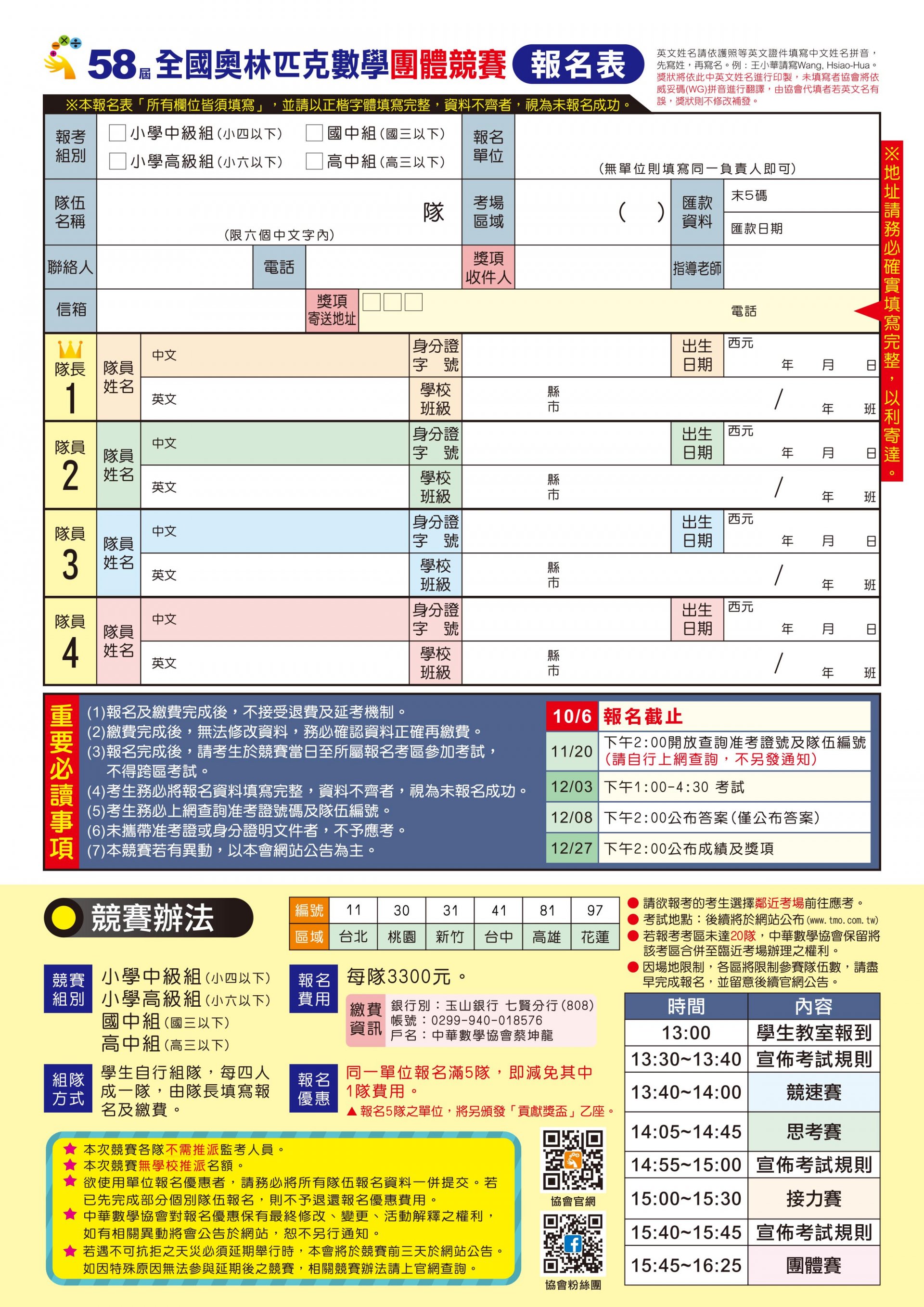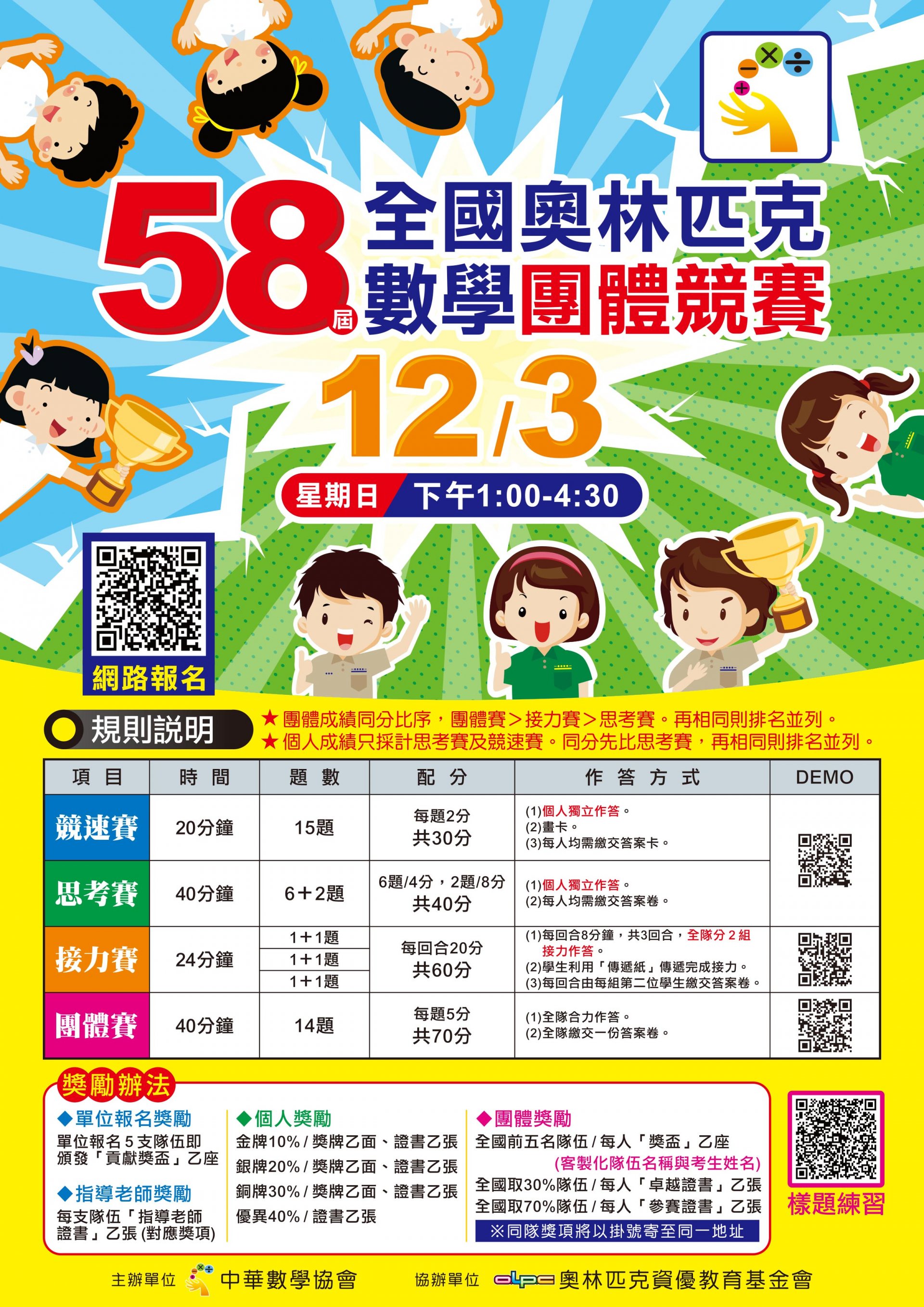 檢附「第58屆全國奧林匹克數學團體競賽」競賽活動相關文宣,供 貴校參閱。