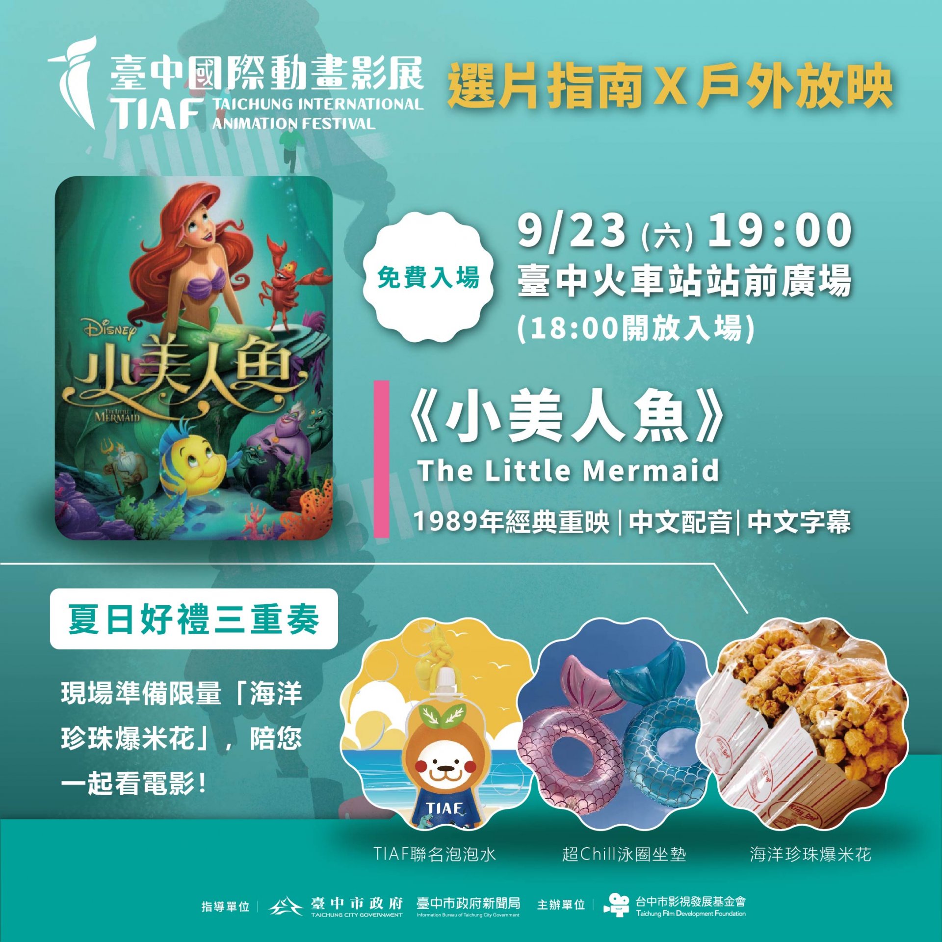 | (一) | 迪士尼知名動畫電影《小美人魚》1989年經典重映,112年9月23日晚上7點於臺中火車站站前廣場,免費入場欣賞。 |