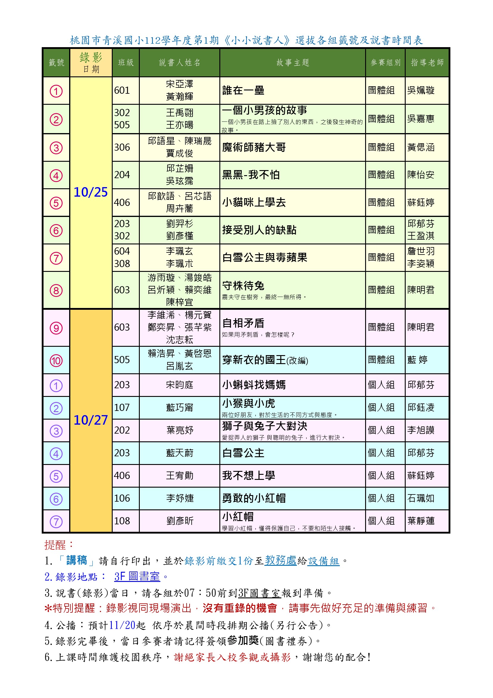 1) 青溪國小112學年度第1期《小小說書人》選拔各組籤號及說書時間表.pdf