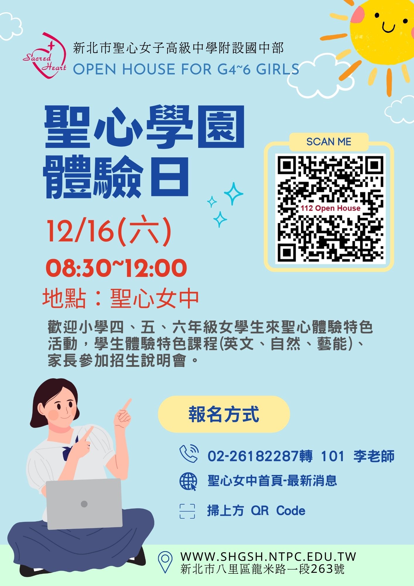 新北市私立聖心女子高級中學辦理112學年度聖心學園課程體驗活動,鼓勵小學四、五、六年級女學生及家長踴躍參加