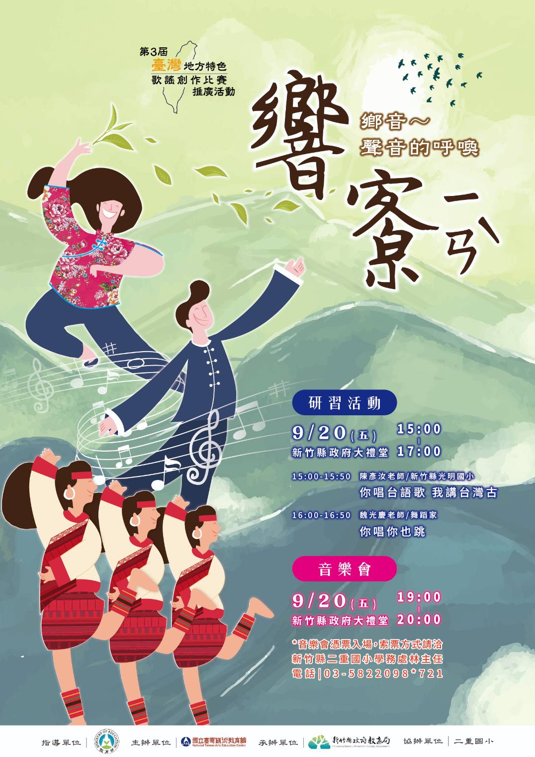 | 主旨: | 轉知國立臺灣藝術教育館辦理第3屆「臺灣地方特色歌謠創作比賽」北區推廣音樂會(含漢詩吟唱)及研習課程活動一案,敬請轉知所屬踴躍參加,請查照。 |