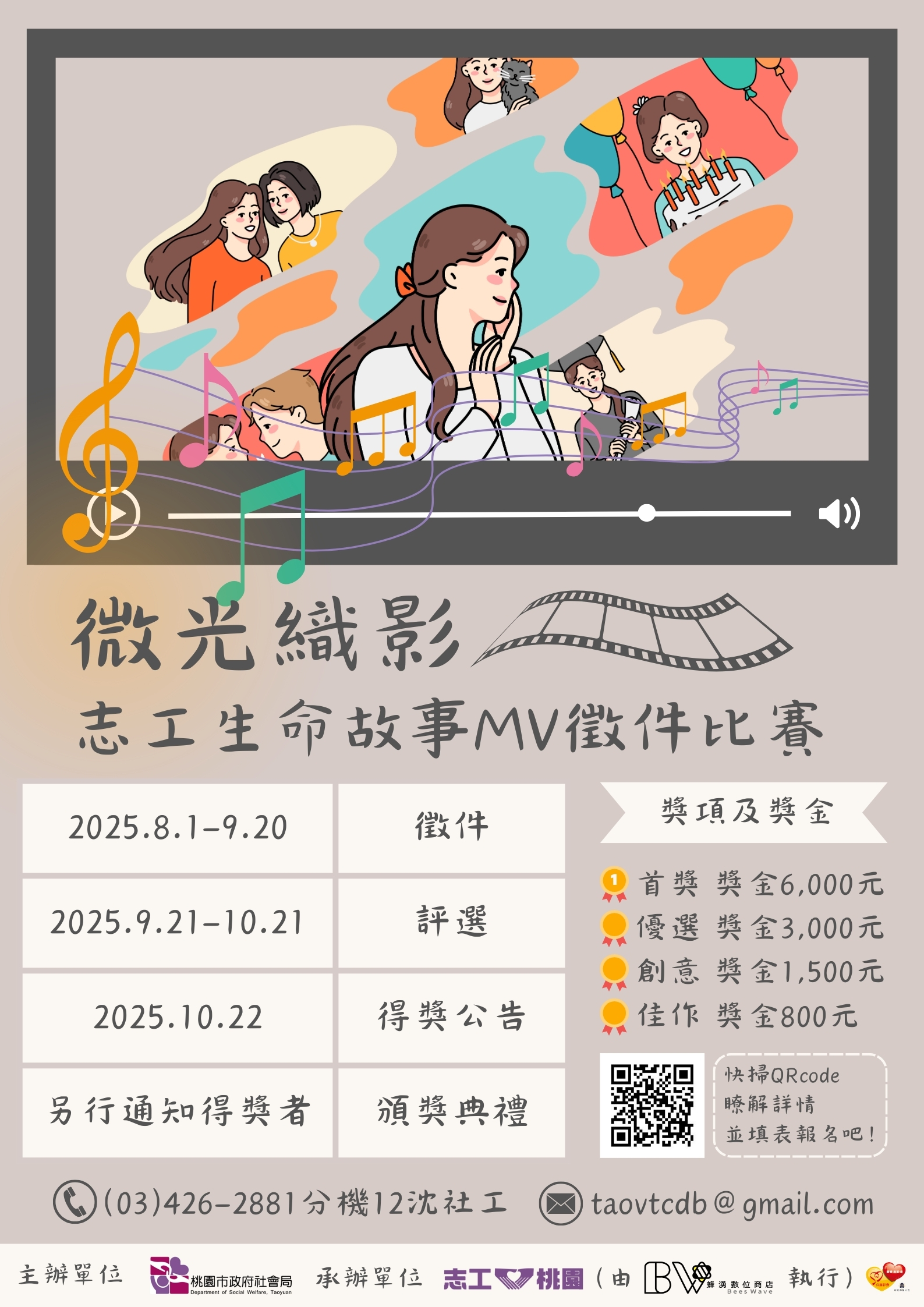 主旨:轉知有關社會局委託蜂湧數位商店辦理桃園市志願服務推廣中心「微光織影—志工故事MV徵件比賽創新方案」一案