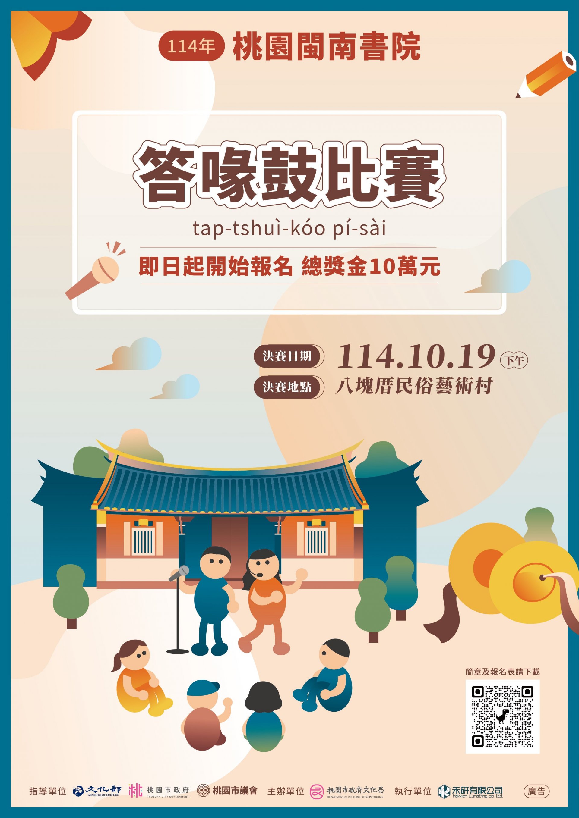 旨揭書院課程為推動桃園閩南文化永續發展,營造多元文化共存願景,預計於114年10月辦理答喙鼓比賽。