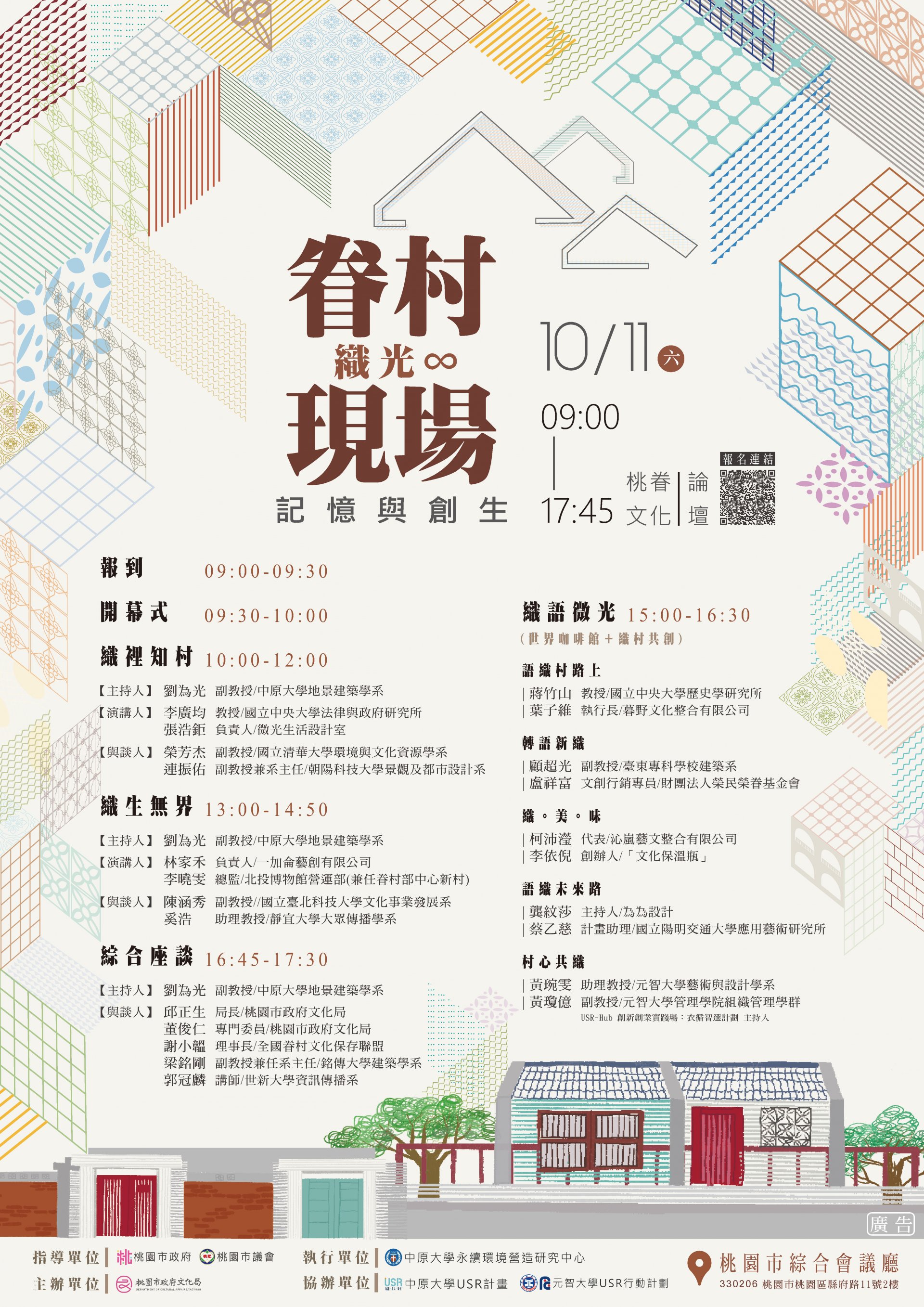 | 二、 | 活動名稱:114年桃園眷村文化論壇活動《記憶與創生:眷村現場織光∞》。 |