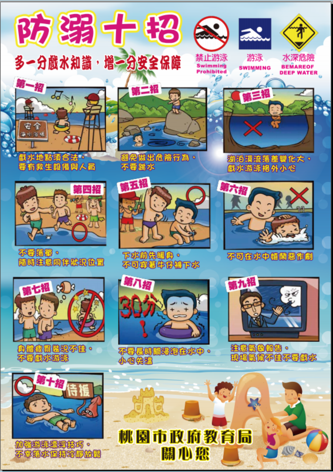 三、切勿前往危險水域戲水,另請家長務必留意子女假日行蹤,避免發生危險或溺水憾事。