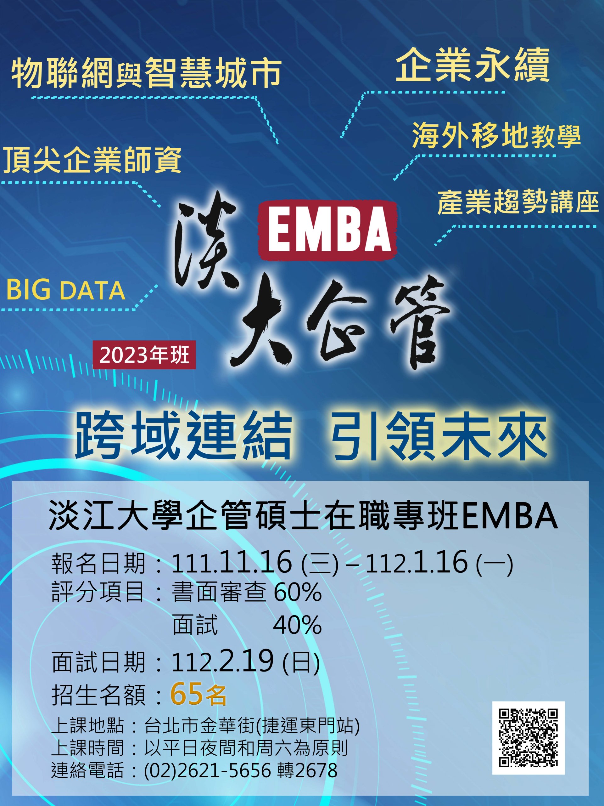 淡江大學企業管理學系112學年度碩士在職專班招生海報及招生資訊