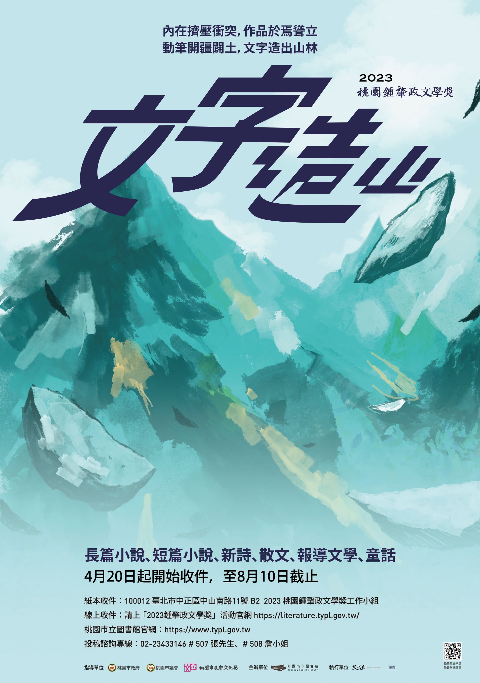 一、 | 為鼓勵文學創作,桃園市立圖書館館「2023桃園鍾肇政文學獎」徵件已開始,投稿資格不限國籍、不限題材,徵文時間至8月10日截止,開放紙本或線上徵件。 |